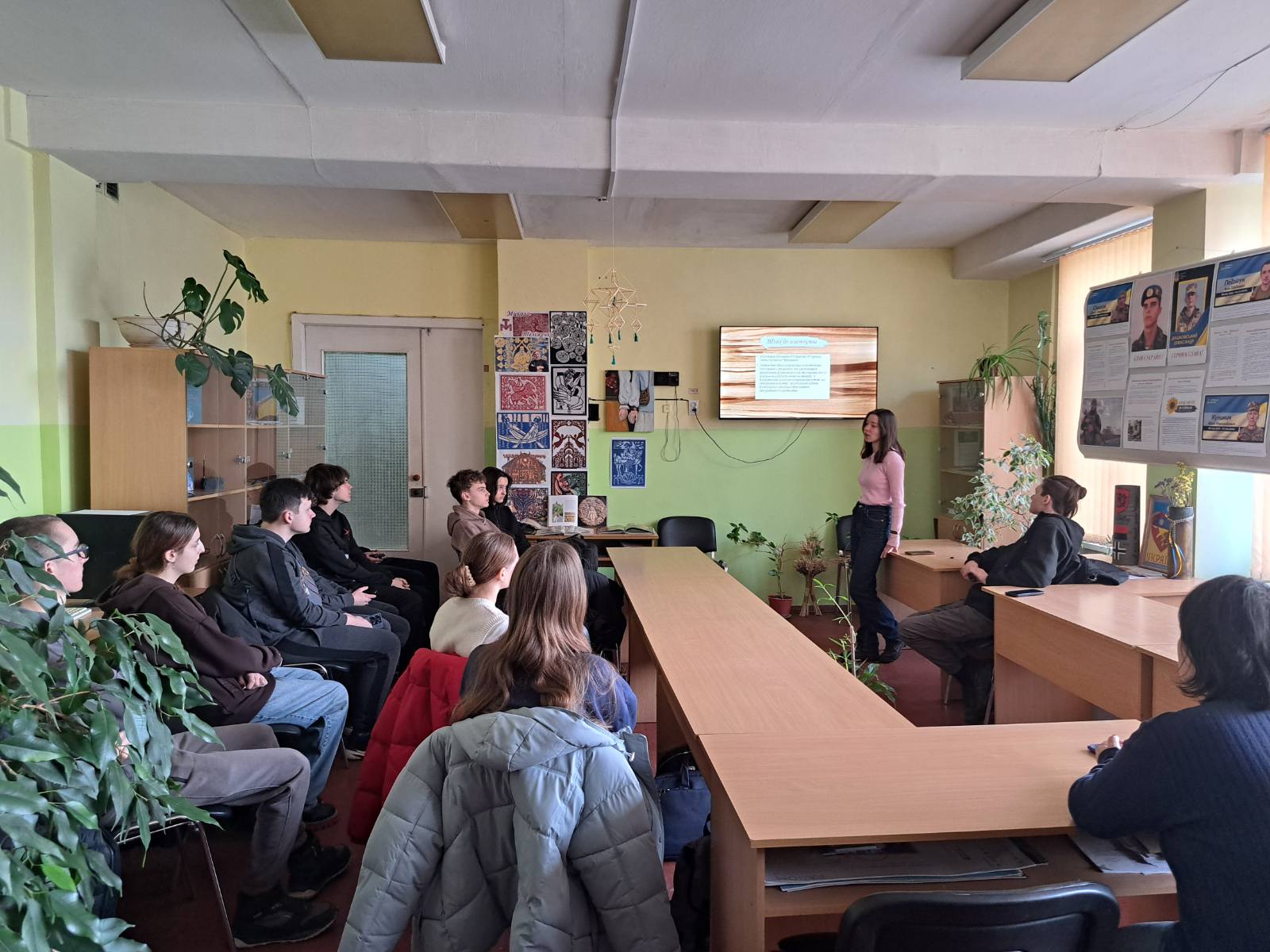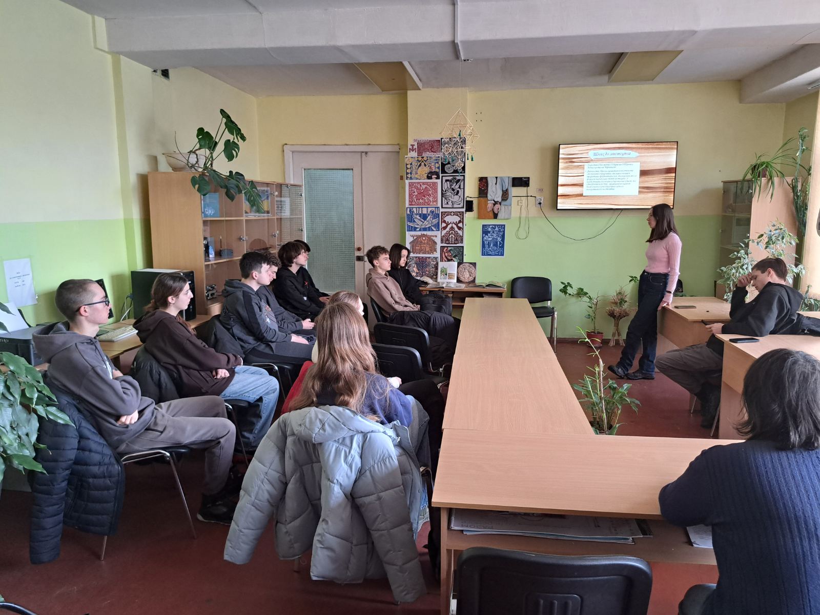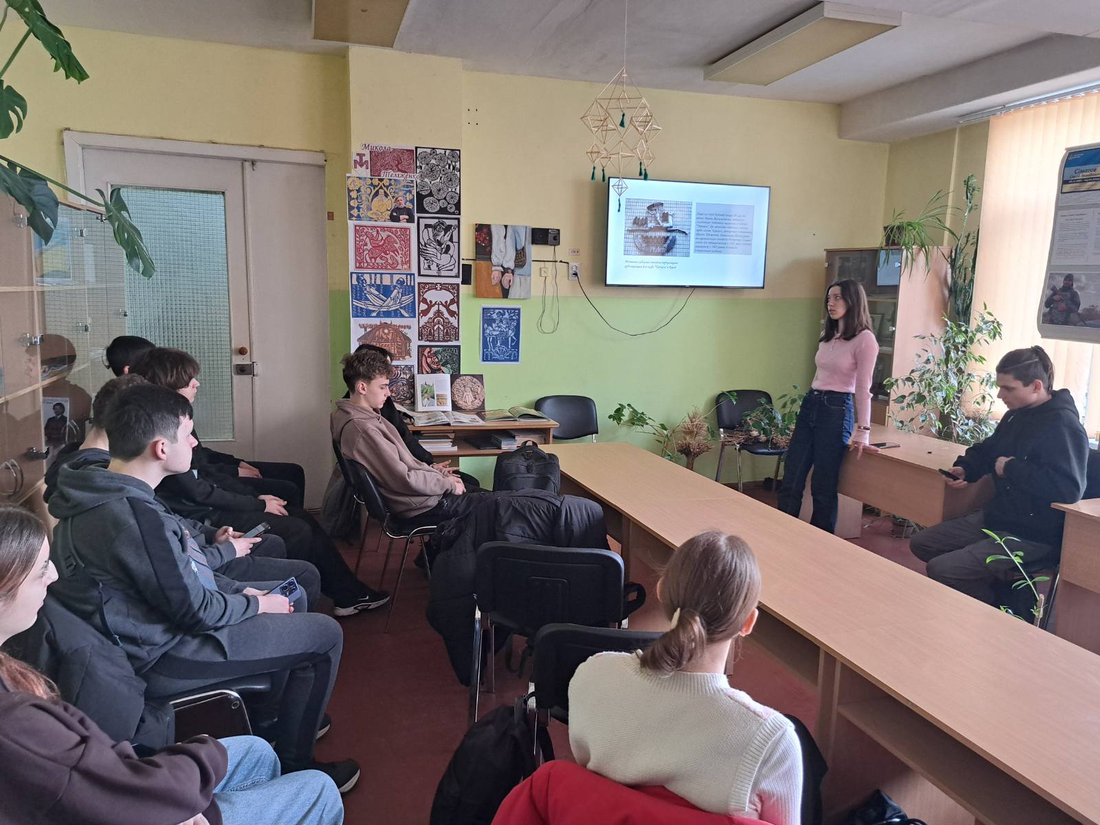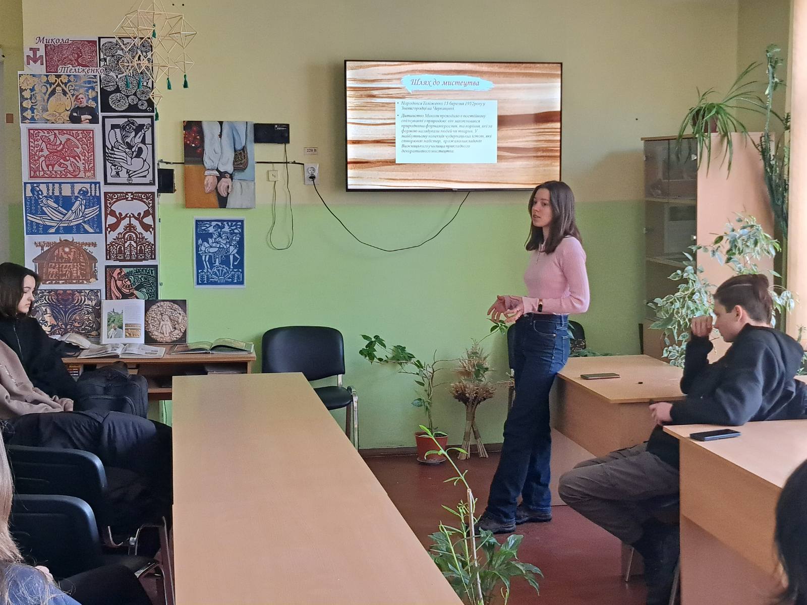 Сьогодні читальний зал нашого коледжу став майданчиком для глибокого занурення у світ українського мистецтва. Студенти групи І-9-24 долучилися до виховної години, присвяченої творчості видатного майстра — Миколи Теліженка.